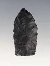 1 3/8" miniature Paleo Dart Point made from black Coshocton Flint, Found in Ohio. Ex. Stambaugh. |