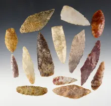 Set of 14 assorted Points found in the Western U.S. A nice variety of materials in the group! |