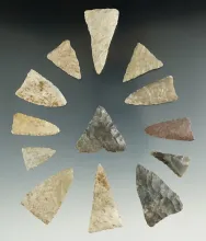 Group of 13 triangular Mississippian arrowheads found in Michigan. Largest is 1 5/8". | ALABAMA | 45.00 | |
