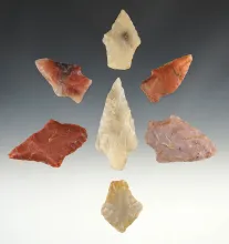 Set of 7 Arkansas points made from Novaculite. The largest is 2 11/16". | ARKANSAS | 65.00 | |