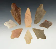 Set of 8 Nice Arkansas points made from Novaculite. The largest is 3". | ARKANSAS | 50.00 | |