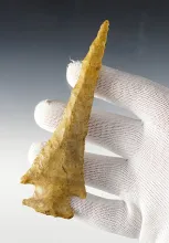 3 7/16" beautifully flaked Archaic Dovetail - Avon Chert. Found in Fulton Co., Illinois. |
