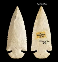 3 13/16" Dovetail made from Burlington Chert. Found in Jersey Co., Illinois. Very well flaked. |