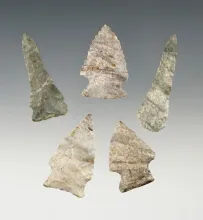 Set of 5 nice assorted Indiana Green points (Attica Chert). The largest is 1 3/4". | INDIANA | 45.00 | |