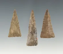 Set of 3 nice Triangle points found in Indiana. Ex. Dan Pearce. The largest is 1 3/4". | INDIANA | 45.00 | |