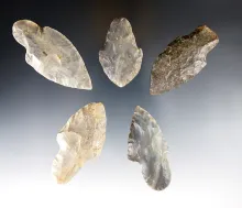 Set of 5 well patinated Indiana Adena points. The largest is 2 3/4". | INDIANA | 30.00 | |