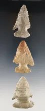 Set of 3 Indiana Archaic Thebes Points in good condition. One is made from colorful Attica Chert. |
