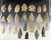 Set of 25 heavily patinated Indiana points in good condition. The largest is 2 7/16". |