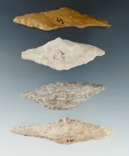 Set of four arrowheads found in the Plains region, largest is 1 1/16". |