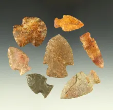 Set of seven assorted arrowheads found in Osborne County Kansas. Colorful materials. | KANSAS | 65.00 | |
