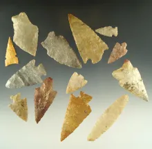 Group of 13 nice arrowheads found in Kansas, largest is 2 3/16". | KANSAS | 35.00 | |