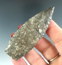 Thin and exceptionally well flaked 2 3/16" Pelican Lake found in Kansas. Comes with a Motley COA. |
