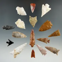 Nice group of 15 assorted arrowheads from various locations, largest is 1 3/4". | KANSAS | 90.00 | |