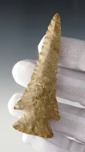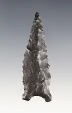 Finely flaked 3 5/8" Triangular Blade made from St. Louis Green. Found in Russell Co., Kentucky. |