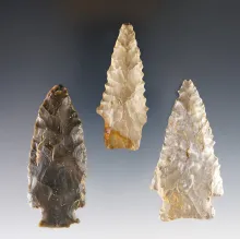 Set of three well styled Archaic points found in Kentucky. Largest is 2 1/2". |