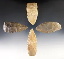 Set of four Paleo Lanceolates found in Kentucky. Largest is 3 1/4". |