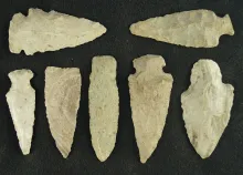 Set of eight nice arrowheads found in southern Michigan, largest is 2 1/4". Ex. Phil Wagle. MICHIGAN 70.00