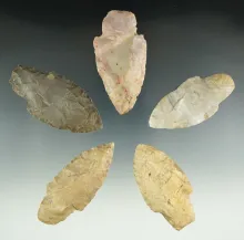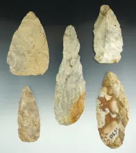 Set of five Adena points found in Lenawee Co., Michigan. Largest is 2 3/4". |