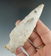 3 15/16" early Archaic stemmed knife with heavily ground stem edges found in Michigan. |