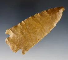 3 7/8" Kirk Cornernotch found in SW Missouri. Made from patinated tan Chert. Bennett COA. | MISSOURI | 85.00 | |