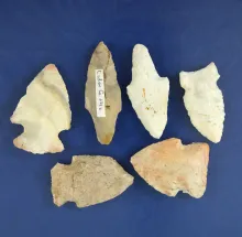 Set of six assorted Missouri Arrowheads - largest is 1 7/8". |