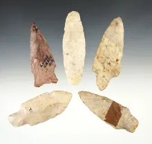 Set of 5 well made points from the Missouri/Illinois area. The largest is 3 5/16". |