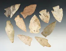 Group of 10 assorted Arrowheads found in Missouri, largest is 2 3/8". MISSOURI 55.00