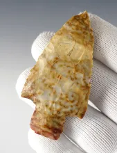 2 3/8" Scottsbluff made from patinated Burlington Chert. Found in Missouri. Stermer COA. |