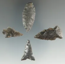 Set of four points found in Montana from an old family collection. Largest is 1 3/8". |