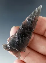 Unique anciently salvaged base on this 1 9/16" obsidian point found in Humboldt Co., Nevada. |