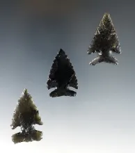 Set of 3 nice Nevada points including a 1 9/16" Elko Eared. All are made from Obsidian. |