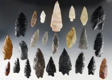 Set of 24 assorted points including 4 Paleo pieces. Found in Nevada. The largest is 2 7/8". |