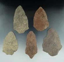 Set of five stone knives found in New Jersey, largest is 4 1/8". |
