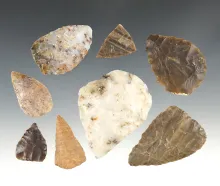 Set of 8 nicely made points found in New Mexico. The largest is 1 5/8". | NEW MEXICO | 60.00 | |