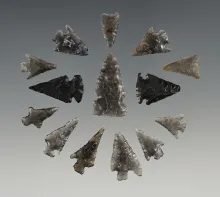 Set of 14 nice New Mexico Obsidian points. The largest is 1 1/16". |