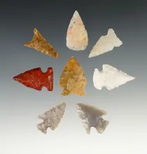 Group of 8 Assorted Arrowheads found in New Mexico, largest is 1 3/16". |