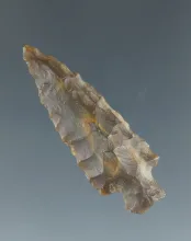 1 1/8" Frio point with nice serrations made of a white Moss Agate found in San Juan County NM. NEW MEXICO