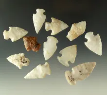 Group of 11 assorted New Mexico arrowheads, largest is 1 3/8". NEW MEXICO 45.00