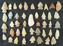 Large group of assorted New Mexico arrowheads, largest is 1 3/4". | NEW MEXICO | 30.00 | |