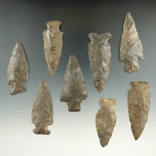 Set of 8 assorted New York arrowheads, largest is 2 1/4". | NEW YORK | 85.00 | |