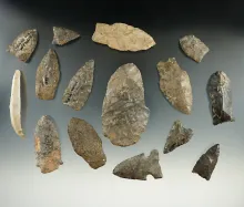 Set of 15 assorted points and knives found in New York, largest is 3". | NEW YORK | 140.00 | |