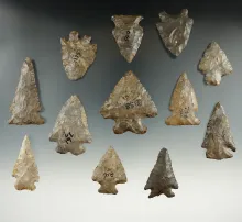 Group of 12 mostly Onondaga Flint points and knives found in New York, largest is 2 1/8". | NEW YORK | 225.00 | |
