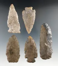 Set of five Flint Knives found in New York, largest is 3 1/2". | NEW YORK | 90.00 |