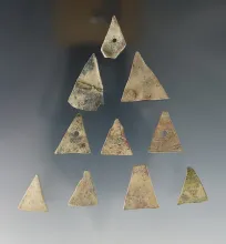 Set of 10 Kettle Points found in White Springs, Geneva, New York. The largest is 1 1/8". |