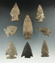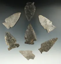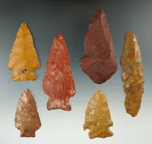 Excellent set of six Triangle points found in New York, largest is 1 13/16". NEW YORK 65.00