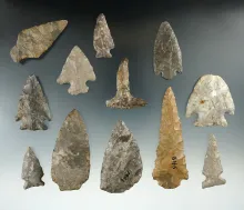 Group of 12 assorted points and Knives found in New York, largest is 3 1/4". NEW YORK 70.00