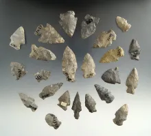 23 arrowheads collected by Howdy Lang off the Seberry farm in Belvidere, Allegheny Co., NY. |