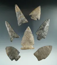 Set of seven assorted New York arrowheads with minor restoration, largest is 2 5/8". NEW YORK 110.00