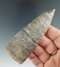 Excellent flaking and style on this 4 1/4" Pentagonal Knife with restoration to 3/8" of tip - NY |