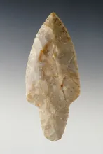 2 3/8" nicely beveled Coshocton Flint Archaic Thebes found in Ohio. |